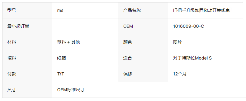 型号S的新能源车门把手增强型微动开关线束柔性线束
