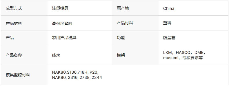 模架: LKM,HASCO,DME,musumi,或按要求等