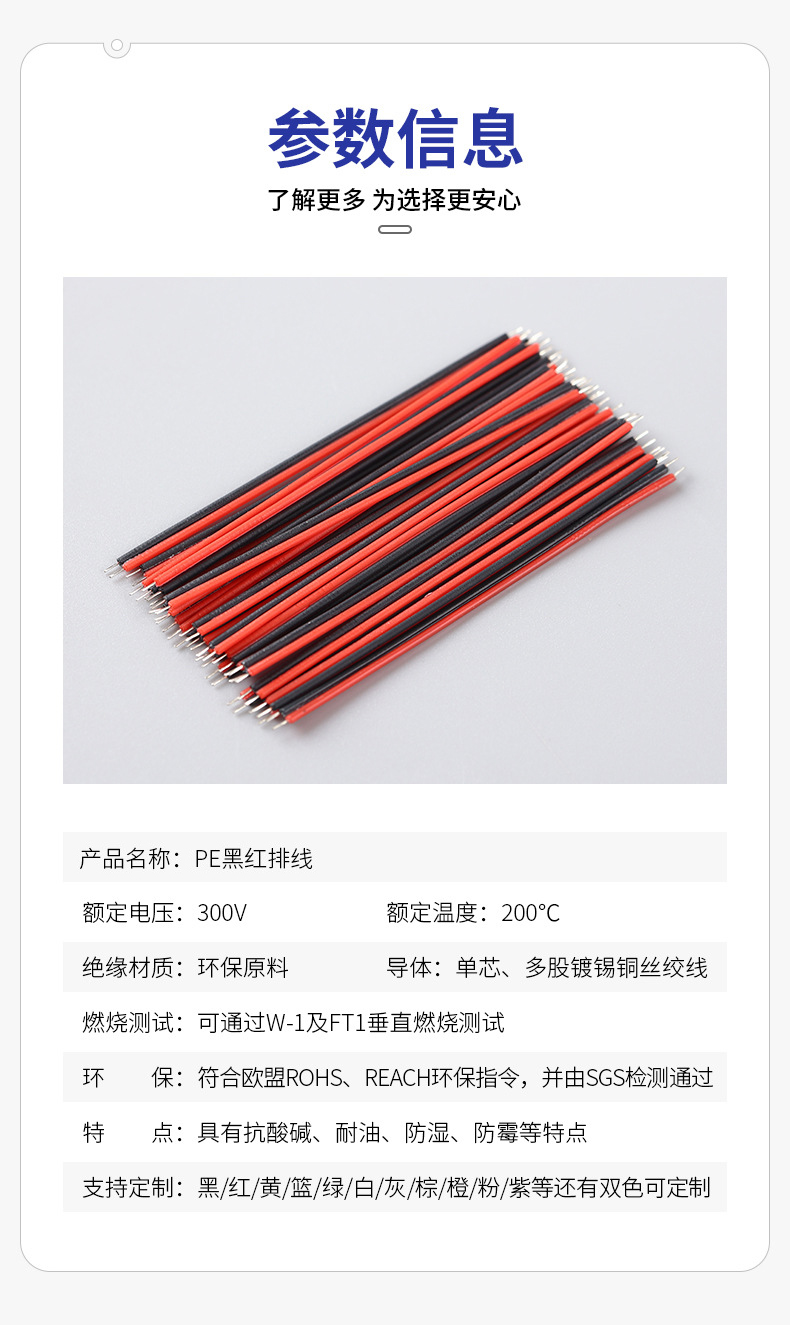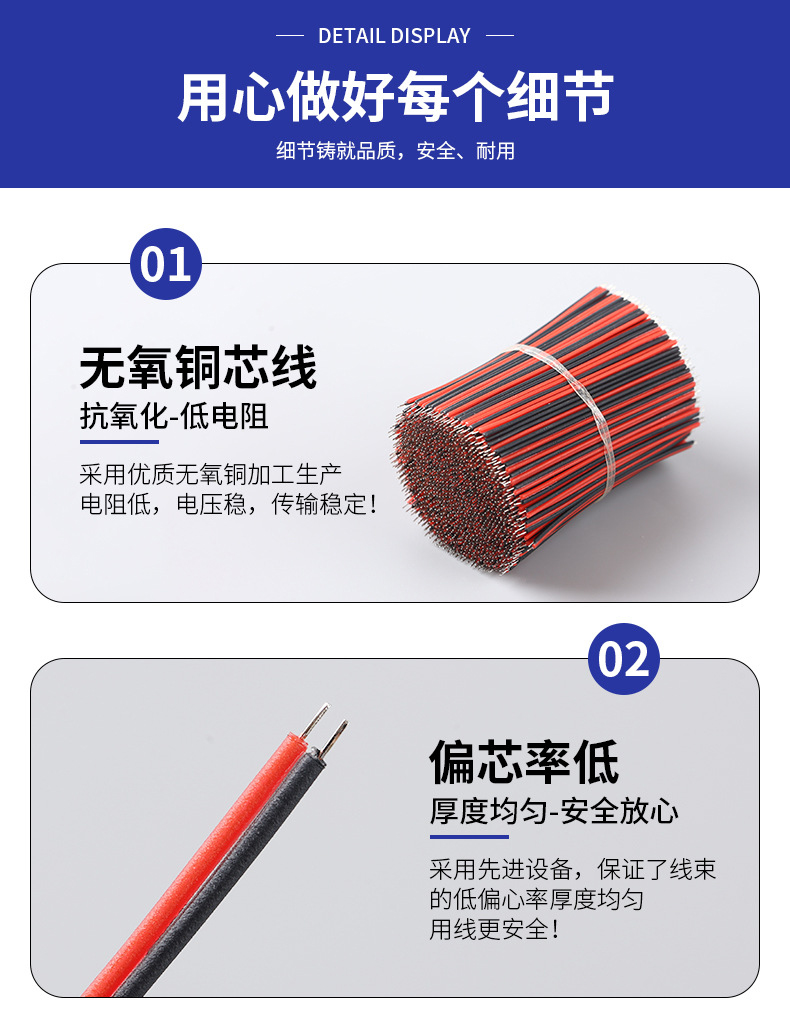 PE红黑排线28#端子线束电子玩具排线60mm端子线加工