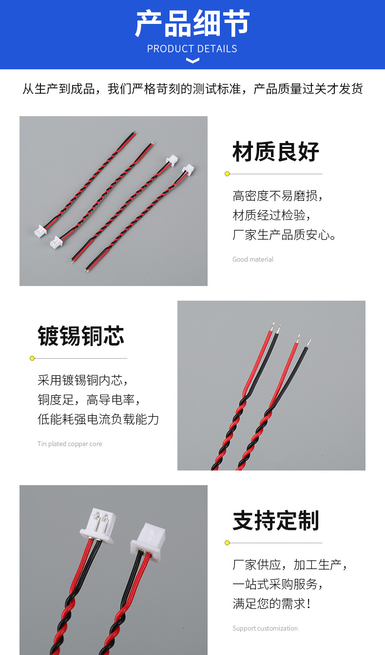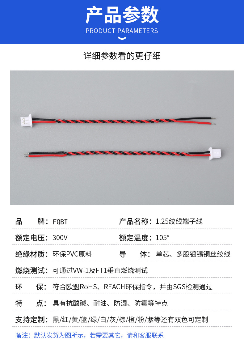 灯具内部端子线1.25单头端子红黑绞线喇叭玩具电池连接线
