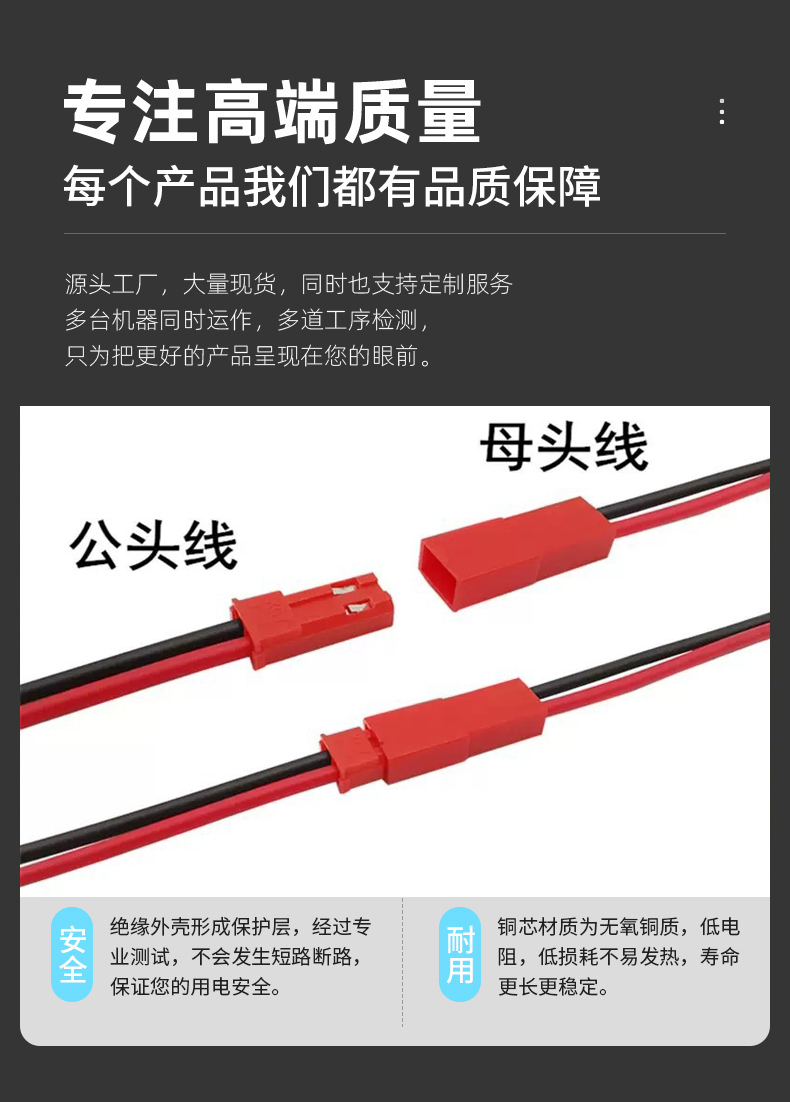 JST对插线 2P公母连接线 LED灯条SYP玩具电源对接线端子线