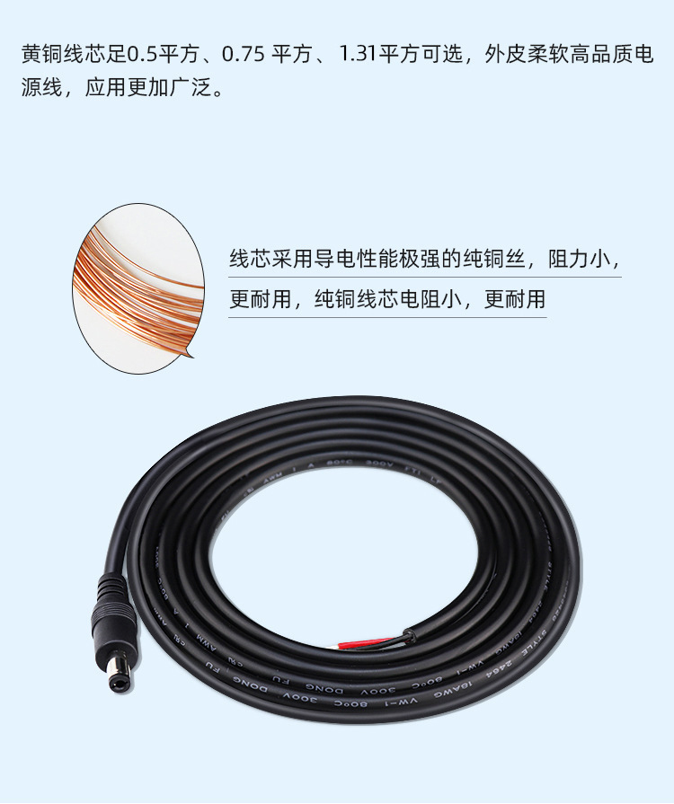 DC电源线5521 5525公头母头纯铜 1.31平方充电延长线